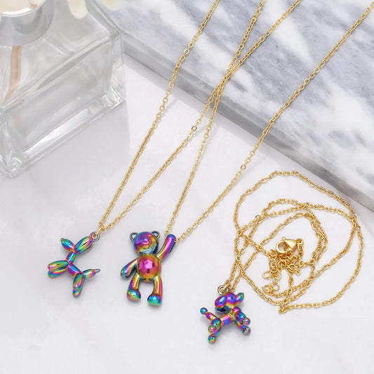 Kawaii Gold-Plated Rainbow Puppy Necklace 🐶✨ | Cute Animal Jewelry Gift for Women 🌈💖