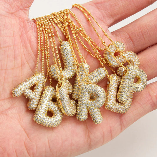 Kawaii CZ Zircon Balloon Initial Necklaces 🎈✨ A-Z Alphabet Bubble Letter Pendants for Trendy Women 💖 Fashion Jewelry