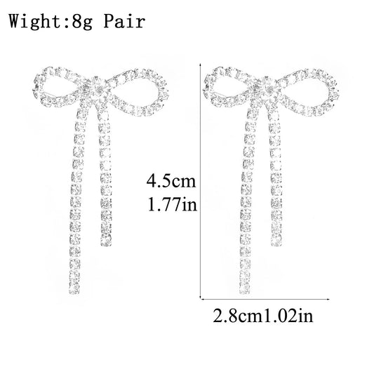 Kawaii Charm β¨ Colorful Rhinestone Bow Dangle Earrings with Long Tassels π Cute Sparkly Jewelry for Women
