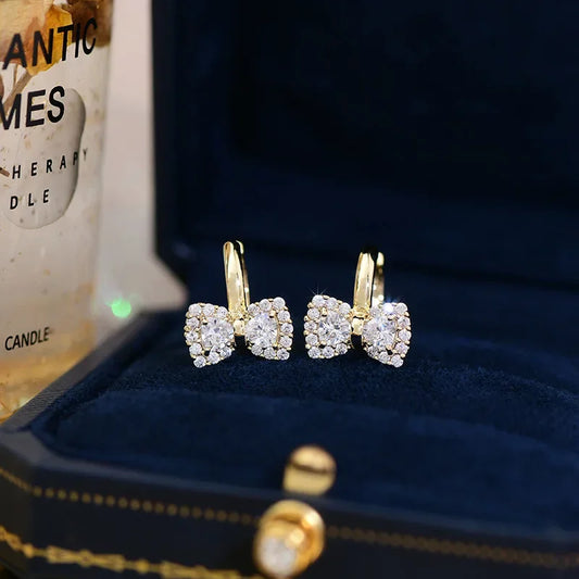 Kawaii Chic Gold-Plated Bow Zirconia Earrings πβ¨ | Adorable Daily Accessory for Women