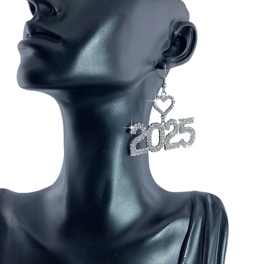 Kawaii 2025 Number Stud Earrings πβ¨ Cute Long Rhinestone & Pearl Accents for Women π Perfect Gift for Friends & Family! π
