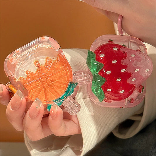 Kawaii 3D Strawberry & Orange AirPods Case ππ | Cute Soft Silicone Keychain Cover for AirPods 1, 2, 3 & Pro 2
