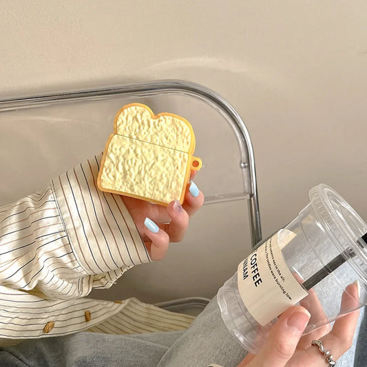Kawaii Toast Silicone Earbud Case ππ§ | Cute & Creative Headphone Cover with Keychain for Huawei FreeClip ππ