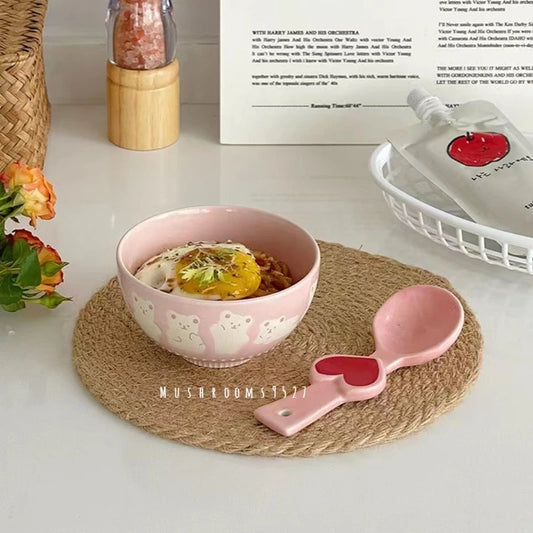 Adorable Pink Bear Embossed Ceramic Snack Bowl 🐻🍚✨