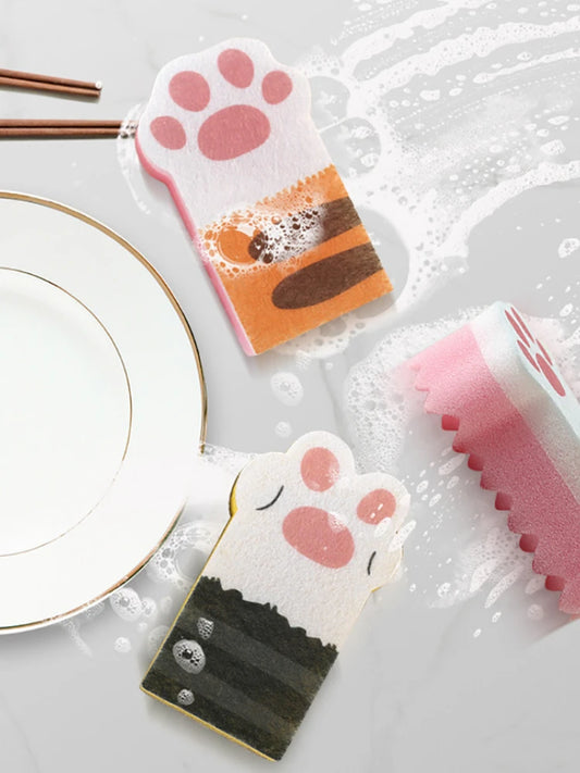 Kawaii Cat Paw Kitchen Scrub Sponges 🐾✨ - Heavy Duty Non-Scratch Dishwashing Pads (3PCS) for Fun & Effective Cleaning! 🧼💖
