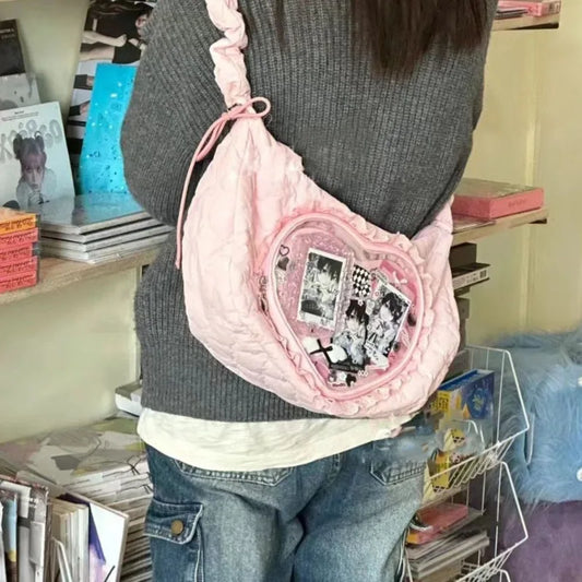 Transparent Heart Pocket Japanese Pain Bags Pleated Shoulder Strap Harajuku Dumpling Bags Lace Y2k Lolita Girls Bag Women's Bags