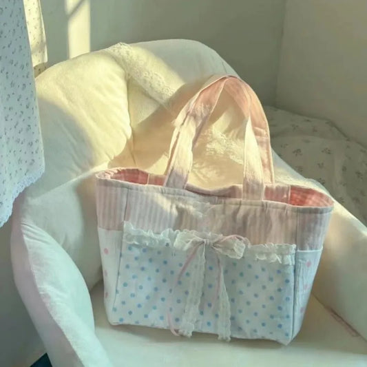 πΈ Kawaii Bow & Lace Canvas Tote π | Sweet Y2K Aesthetic Shoulder Bag for Women β¨