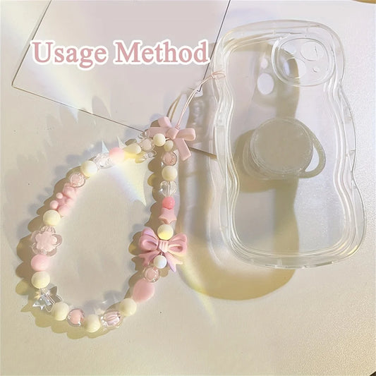 Kawaii Pink Bear & Bow Lanyard πΈβ¨ Cute Pearl Phone Charm Strap for Girlsβ€οΈπ¦