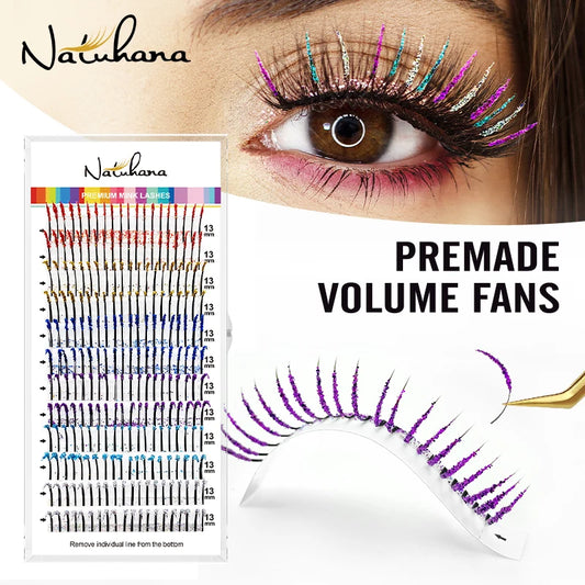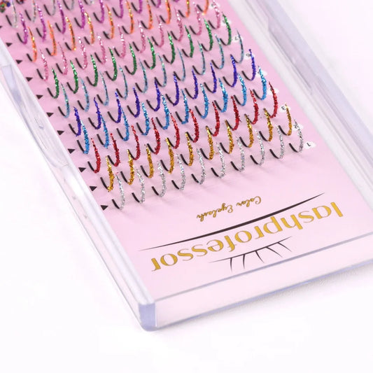✨ Kawaii Glittery Colorful Lash Extensions 🎉 - Shiny Volume for Party Glam! 💖