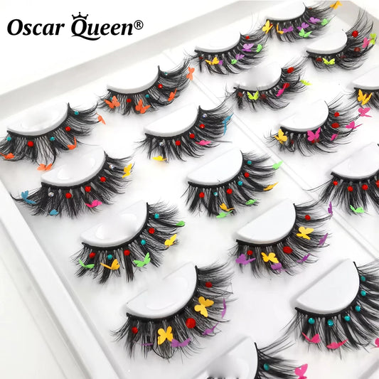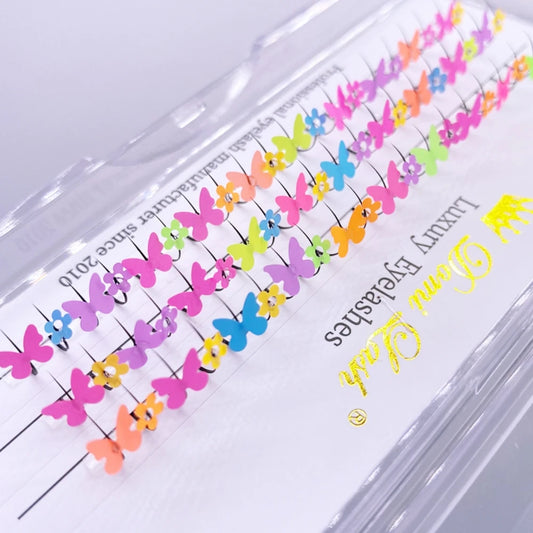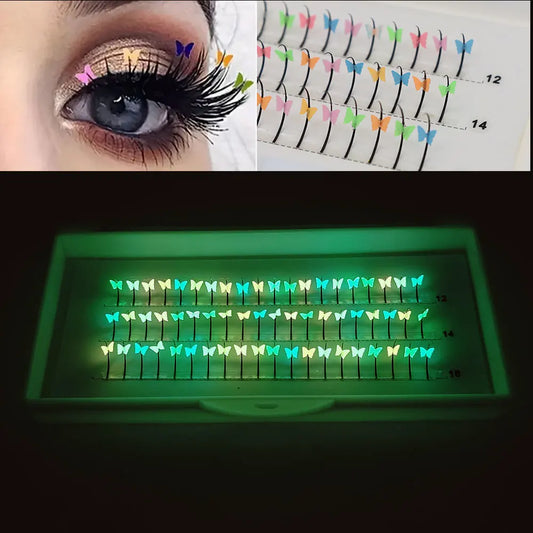 Whimsical Butterfly Glitter Lashes 🦋✨ - Colorful & Fluorescent Individual Extensions for Magical Makeup! 🌈💖