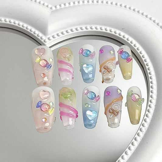 Kawaii Candy Color 10Pcs Press-On Nails π¬β¨ | Adorable Handmade Faux Nails for a Playful Look! π π