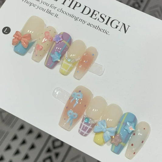 β¨ Adorable Candy Bear Bow Nails | Full Cover Kawaii Press-Ons for Whimsical Glam π