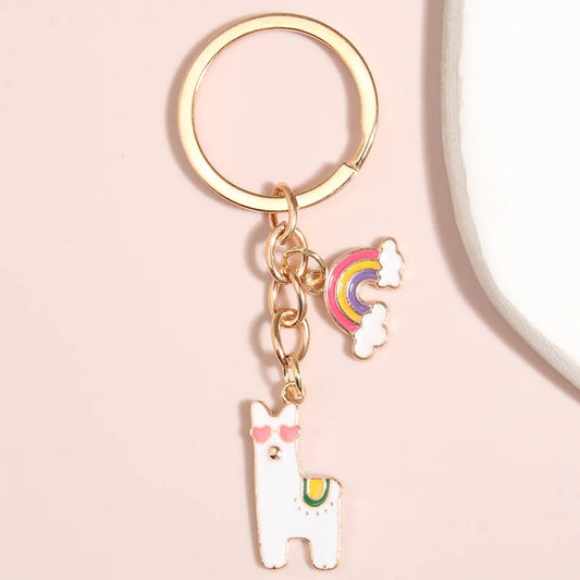 Kawaii Animal Keychains 🌸🐾 Adorable Alpaca & Flower Heart Enamel Key Rings for Trendy Bags 🎀 Perfect DIY Jewelry Gifts!