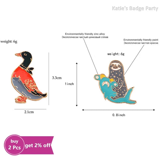 Kawaii Animal Friends Enamel Pins 🦙🐥🦥🐑 | Cute Brooches for Kids - Fun Denim & Bag Accessories 🎒✨