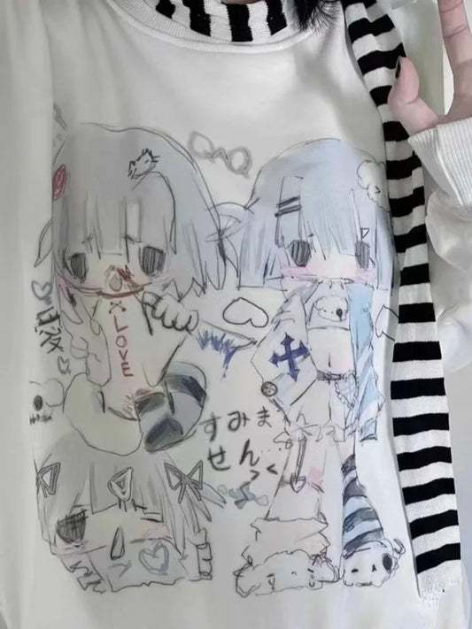 Kawaii Y2K Harajuku Anime Hoodie 🌟 | Cute Cartoon Sweatshirt for Trendy Students 🎀 | Cozy Long Sleeve Top 2023