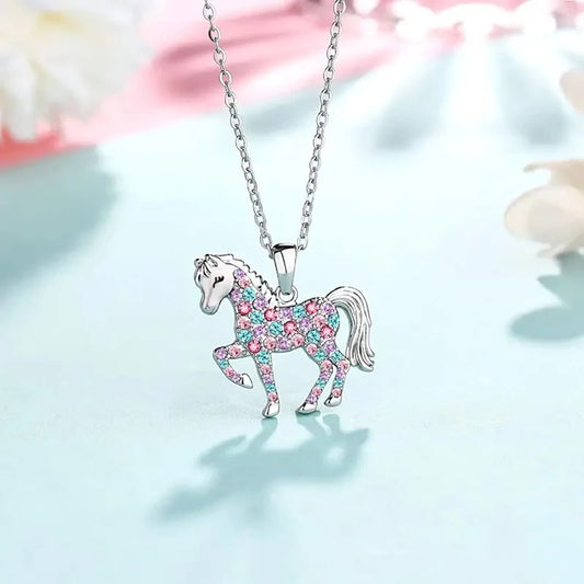 Kawaii Colorful Unicorn Crystal Pendant Necklace 🦄✨ - Adorable Jewelry Gift for Kids!