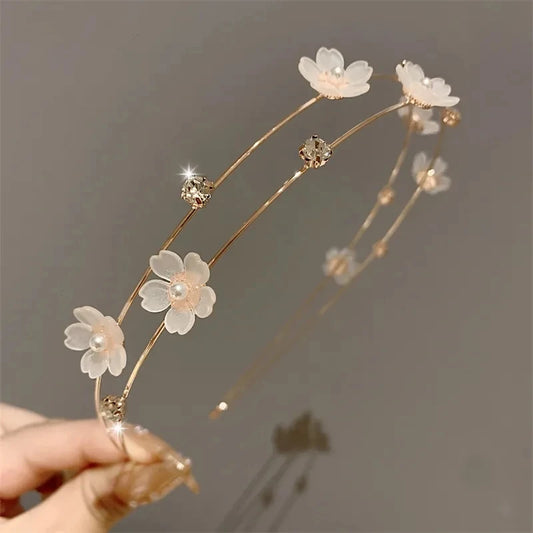 Kawaii Double Layer Floral Pearl Headband πΈβ¨ - Shiny Rhinestone Hairband for Trendy Women! ππ