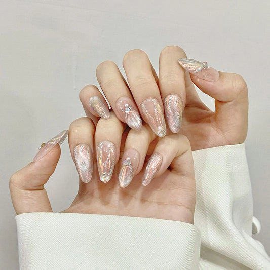 Mermaid Dream πβ¨ Kawaii Blue Aurora Press-On Nails - 10pcs Detachable Pearl Almond Tips! ππ