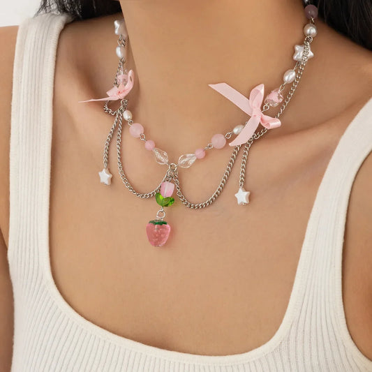 Kawaii Strawberry Pearl Choker πβ¨ | Sweet Aesthetic Necklace for Women πΈπ