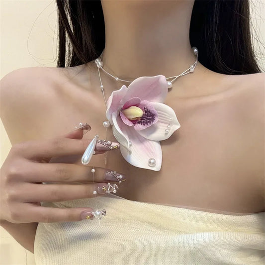 πΈ Kawaii Magnolia Choker Necklace π Trendy Pearl Collarbone Chain for Womenβs Banquet & Travel 2024 π¦β¨