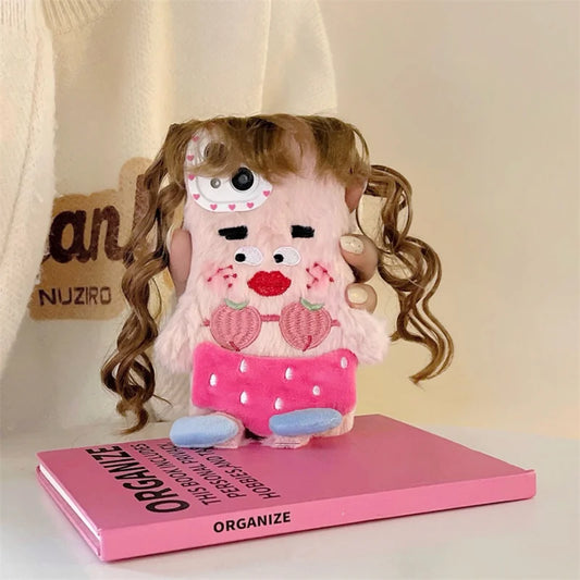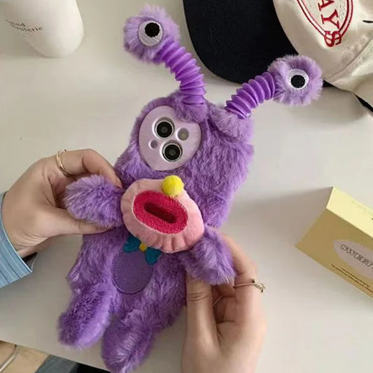 Kawaii Little Monster Plush Phone Case for iPhone 📱✨ - Soft, Glowing & Adorable! 🦖💖