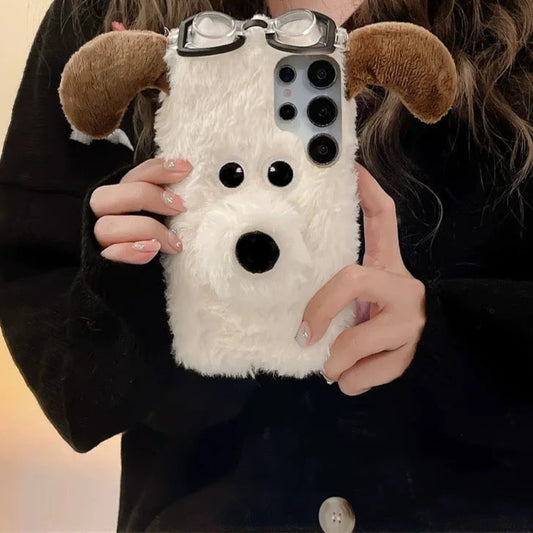 Kawaii 3D Plush White Dog Case for Samsung Galaxy 📱🐶 | Cute & Cozy Winter Silicone Cover