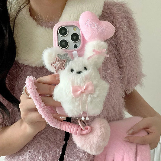 Kawaii 3D Fluffy Bunny Phone Case 🐰💖 for iPhone 11 12 13 14 15 16 Plus - Cozy Winter Furry Cover!