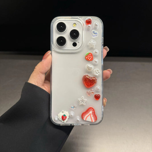 Kawaii 3D Heart Strawberry iPhone Case 🍓💕 | Cute Shockproof Back Cover with Chain for Girls 🎀✨