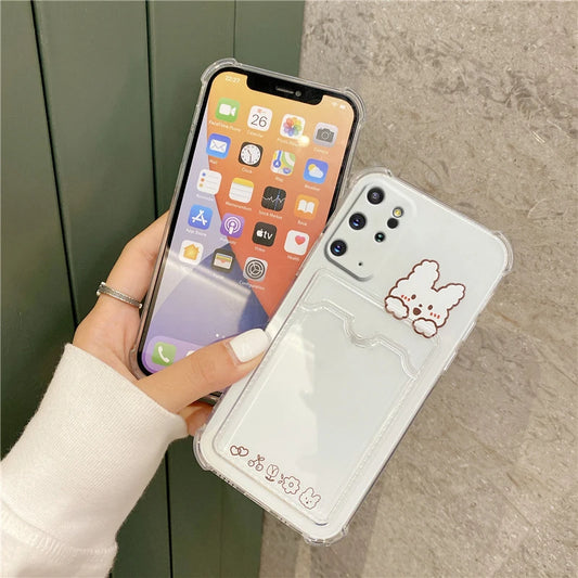 β¨ Adorable Transparent Bear Card Holder Case for Samsung Galaxy S22/S21/S20 FE/S10/S10e/Note 10/20 Plus Ultra π»π