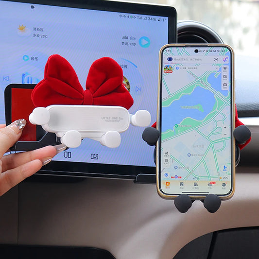 Kawaii Cartoon Red Bow Gravity Car Phone Holder ππ | Cute Air Vent Mount for 4.0-6.0" Phones ππ±