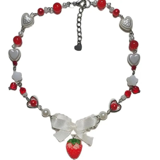 Kawaii Love Heart Strawberry Pendant Necklace 🍓💕 - Sweet & Trendy Jewelry for Women, Perfect Party Gift!