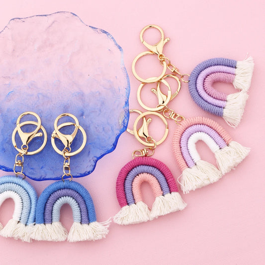 Kawaii 5cm Rainbow Tassel Keychains πβ¨ | Cute Macrame Car Keyring & Bag Charm for Women ππΌ