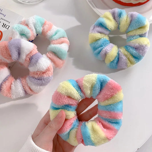 Kawaii Rainbow Fluffy Hair Scrunchies πβ¨ | 4pcs Soft Towel Hair Bands for Girls & Women ππ