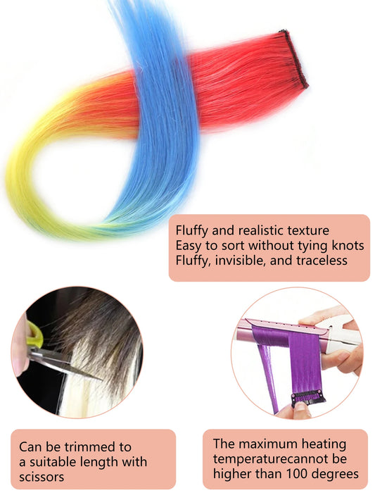 Kawaii Rainbow Hair Clips πβ¨ - 1PCS Colorful Gradient Extensions for a Magical Look! π
