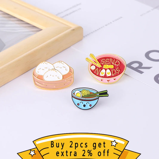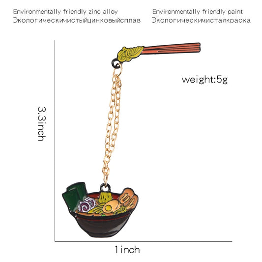 Kawaii Cartoon Ramen Enamel Pin 🍜✨ - Cute Brooch with Bowl & Chopsticks for Denim Shirts & Gifts 🎁💖