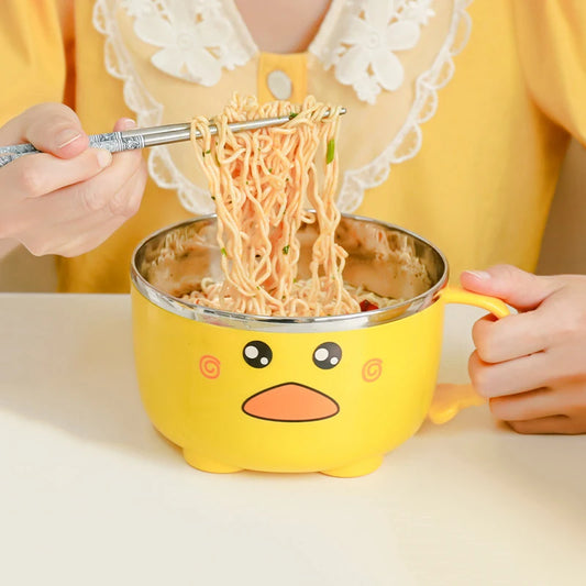 Adorable Kawaii Duck Stainless Steel Ramen Bowl 🍜✨ | Large Capacity Bento Box with Lid for Instant Noodles & More! 🥢💖
