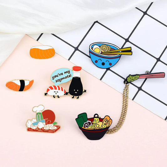 Kawaii Japanese Food Lapel Pins 🍣🥢 Cute Salmon Sushi & Ramen Brooches ✨ Fun Enamel Badges for Kids & Girls 🎀 Adorable Jewelry Gift!