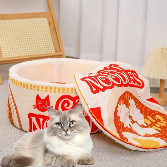 Kawaii Ramen Cat Cuddle Nest - Cozy Winter Retreat for Your Feline Friend 🐾💕