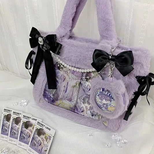 Kawaii Dreams: 3D Bow-Adorned Plush Ita Bag with Transparent Pockets π¦β¨