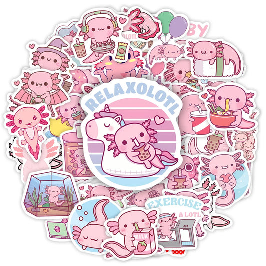 Kawaii Cartoon Axolotl Stickers Cute Animal Kids DIY Toy Gift Graffiti Decal for Phone Luggage Laptop Scrapbook Waterproof