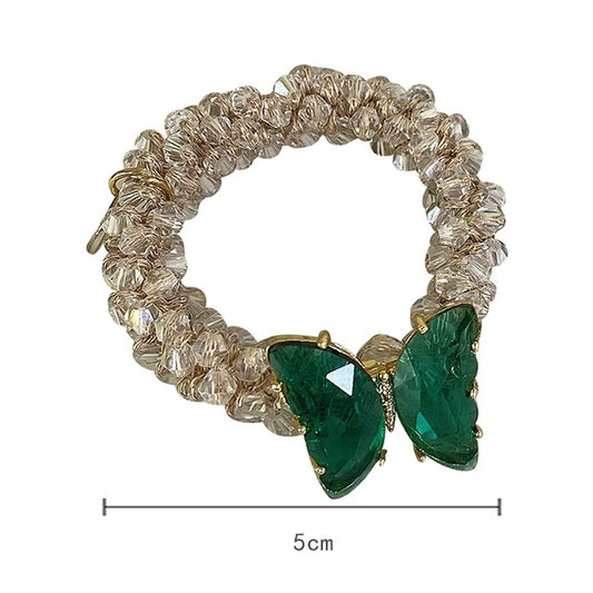 Kawaii Crystal Butterfly Hair Tie 🦋✨ | Luxurious Beaded Elastic Hair Band for Women & Girls | Exquisite Ponytail Accessory 🎀
