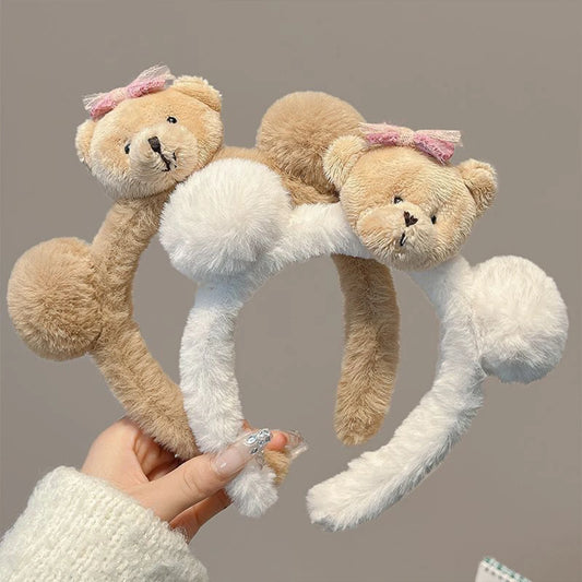Kawaii Cartoon Bear Bow Plush Hairband 🐻🎀 - Adorable Non-Slip Women's Headgear for Every Season!