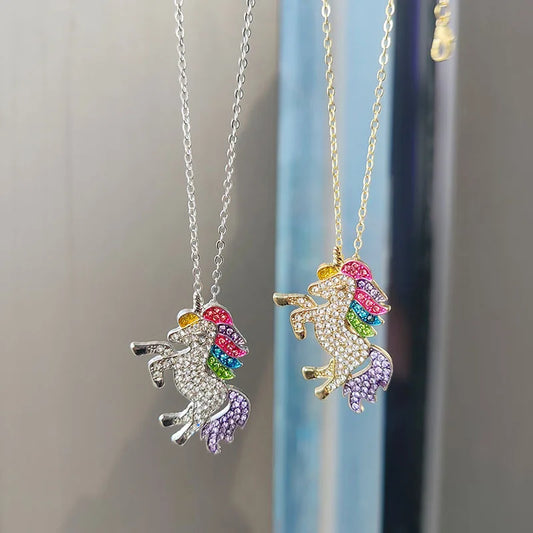 Kawaii Unicorn Pendant Necklace π¦β¨ - Adorable Rhinestone Horse Clavicle Chain for Girls ππ - Perfect Party Jewelry Gift!