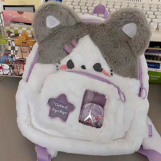 Kawaii Plush Fluffy Backpack 🎒✨ | Cute Purple & White Women's Bag for Fashion Lovers 🌸💕