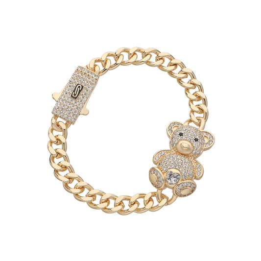 Charming Kawaii Teddy Bear Cuff Bracelet with Sparkling CZ Crystals π»πβ¨