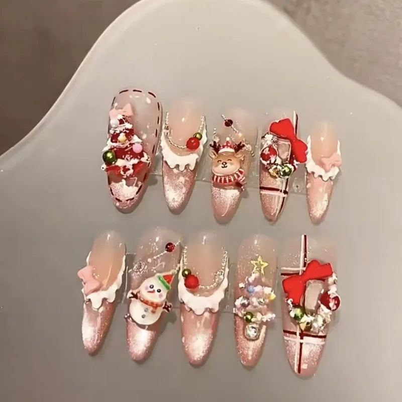 Get ready to sprinkle some festive magic with our Kawaii Christmas Nail Set! This delightful collection features: