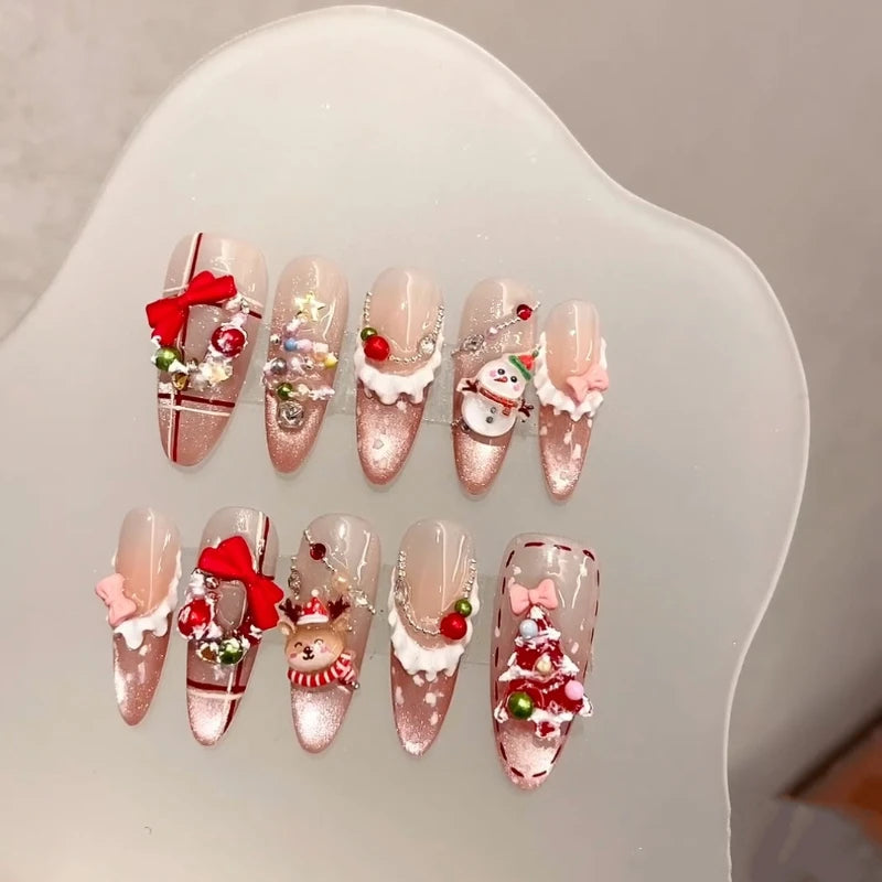 - Handmade acrylic nails perfect for adding a touch of kawaii to your Christmas celebrations.