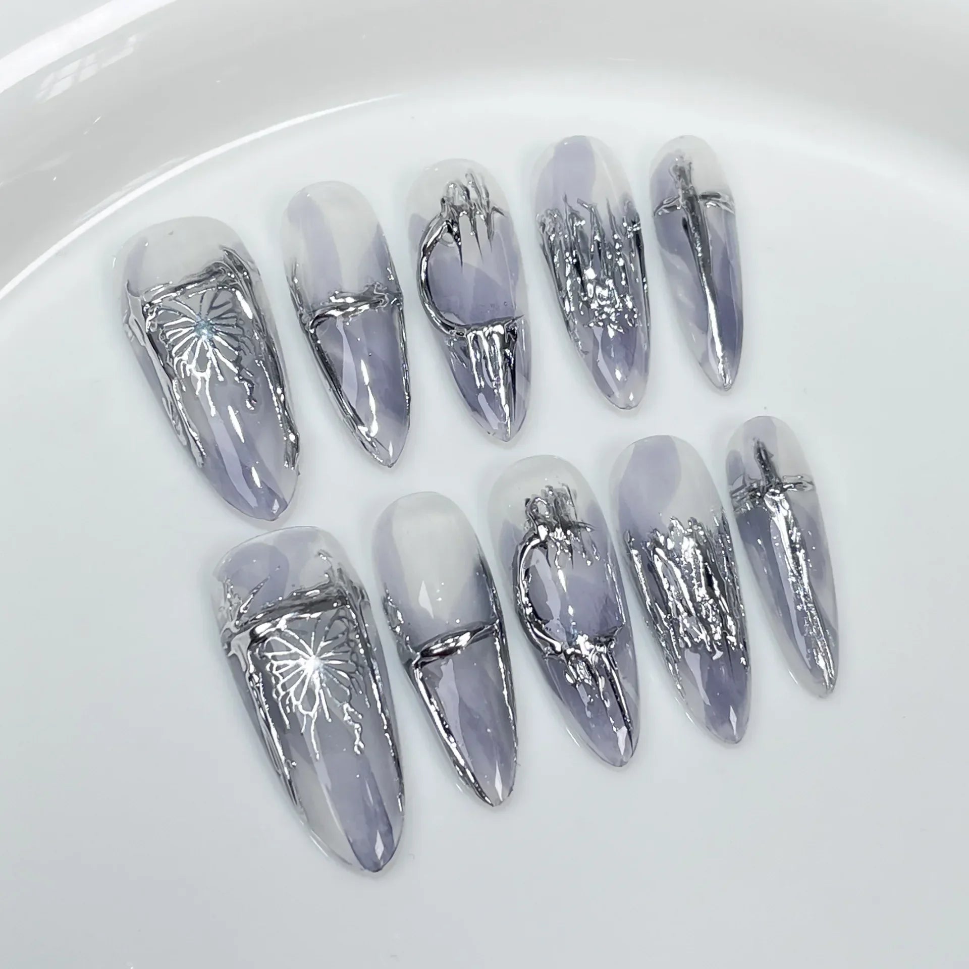 Kawaii 10-Piece Rhinestone Almond Press-On Nails β¨π | Handmade Acrylic Nail Art Set for Adorable Looks! π
