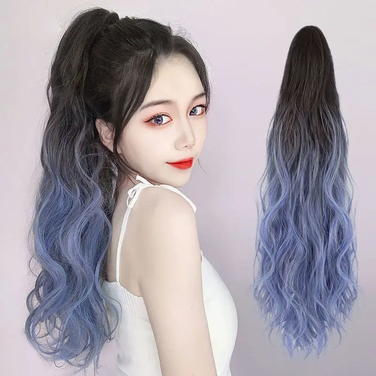 ✨ Kawaii 18" Gradient Water Wave Ponytail Clip-In Wig 🌸 Long Curly Hairpiece for Fun Styles! πŸ’–