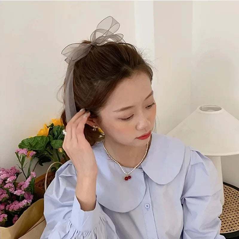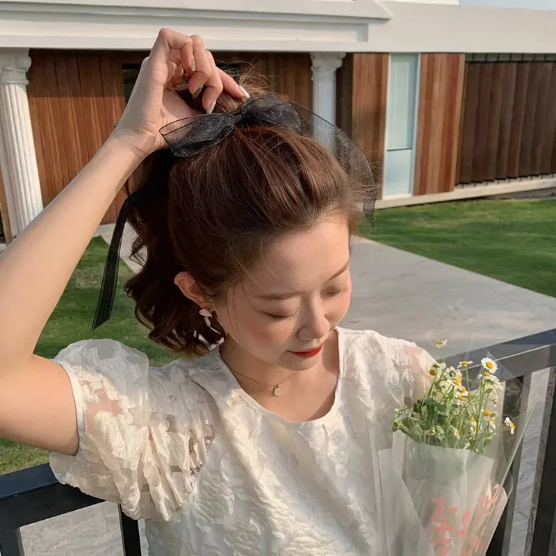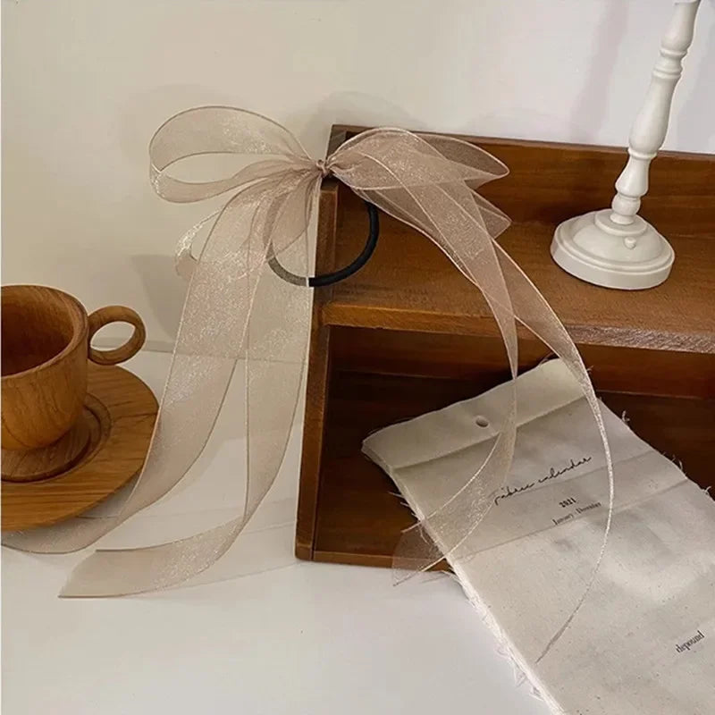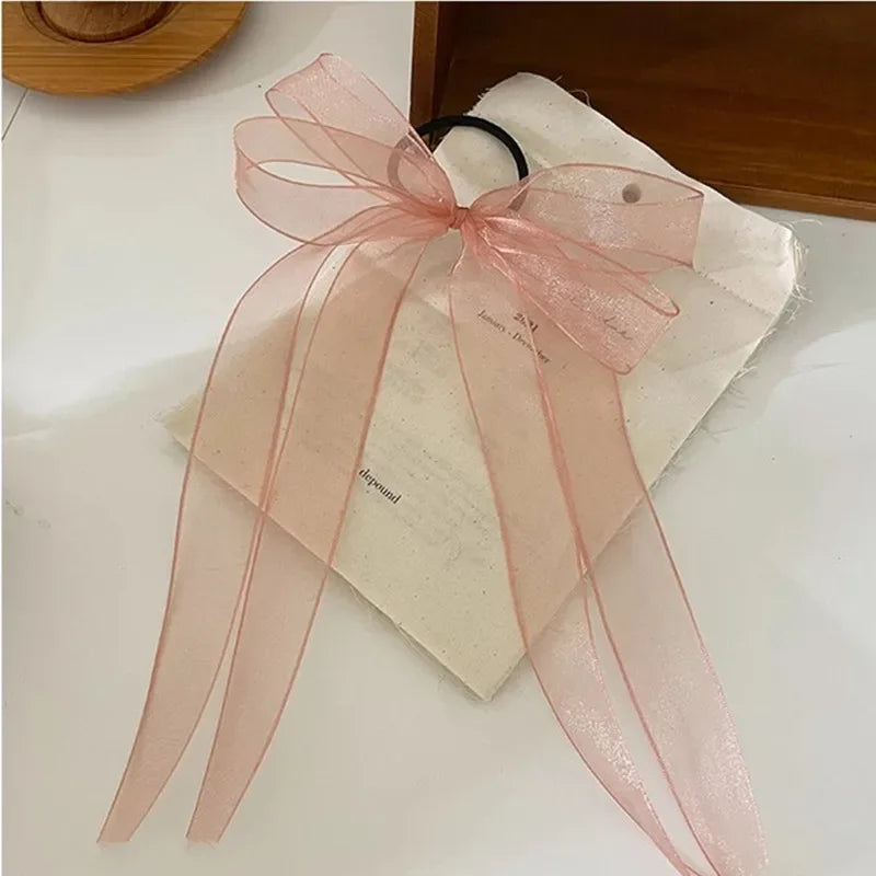 ✨Charming Organza Bow Hair Scrunchie 🌸💕 - Adorable Korean Style Hair Ring for Trendy Girls!